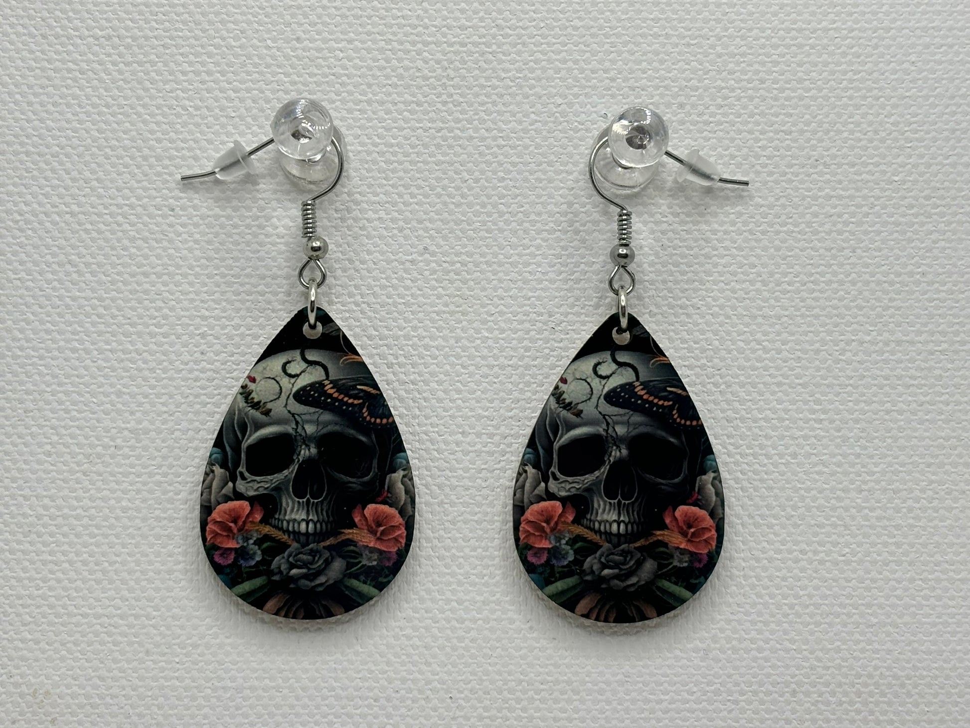 These double-sided skull earrings showcase meticulous craftsmanship with detailed imagery visible from both sides. The symmetrical design ensures a polished appearance regardless of angle, making them a versatile addition to any collection. Constructed with precision, these pieces balance aesthetic impact with wearability. Ideal for those who appreciate quality accessories that combine artistic design with functional elegance, these earrings deliver both visual interest and lasting durability.