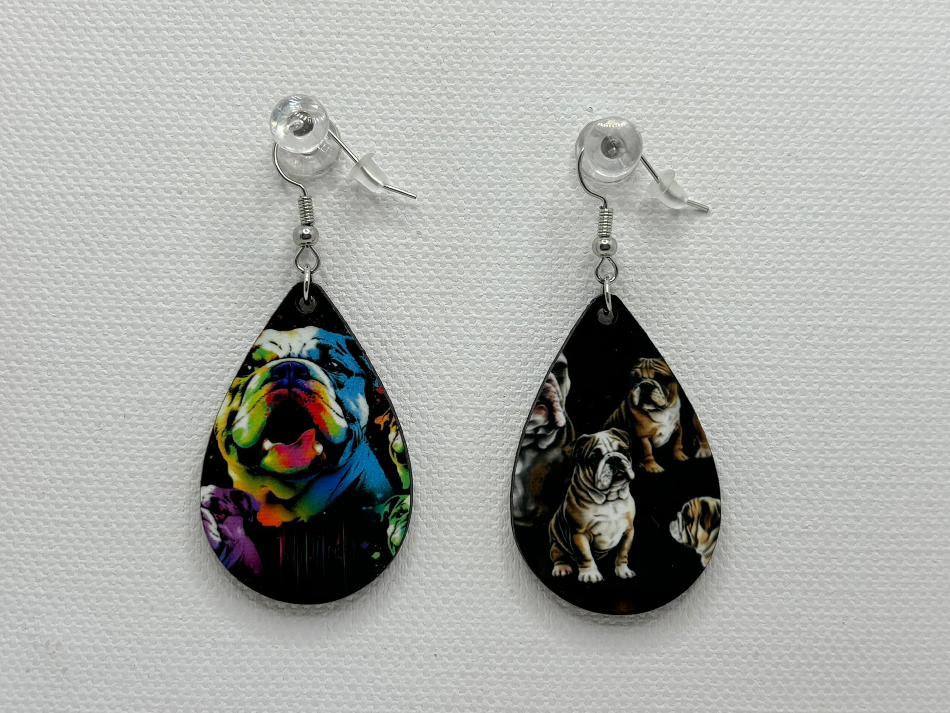 English Bulldog Double Sided Earrings Celebrate your love for English Bulldogs with these distinctive double-sided earrings. Featuring detailed bulldog imagery on both sides, these earrings offer visual interest from every angle. Crafted with attention to breed characteristics, they're an ideal accessory for bulldog enthusiasts and breed lovers. Perfect for everyday wear or as a thoughtful gift for fellow dog devotees, these earrings combine quality craftsmanship with a charming canine design that makes a subtle yet meaningful statement.