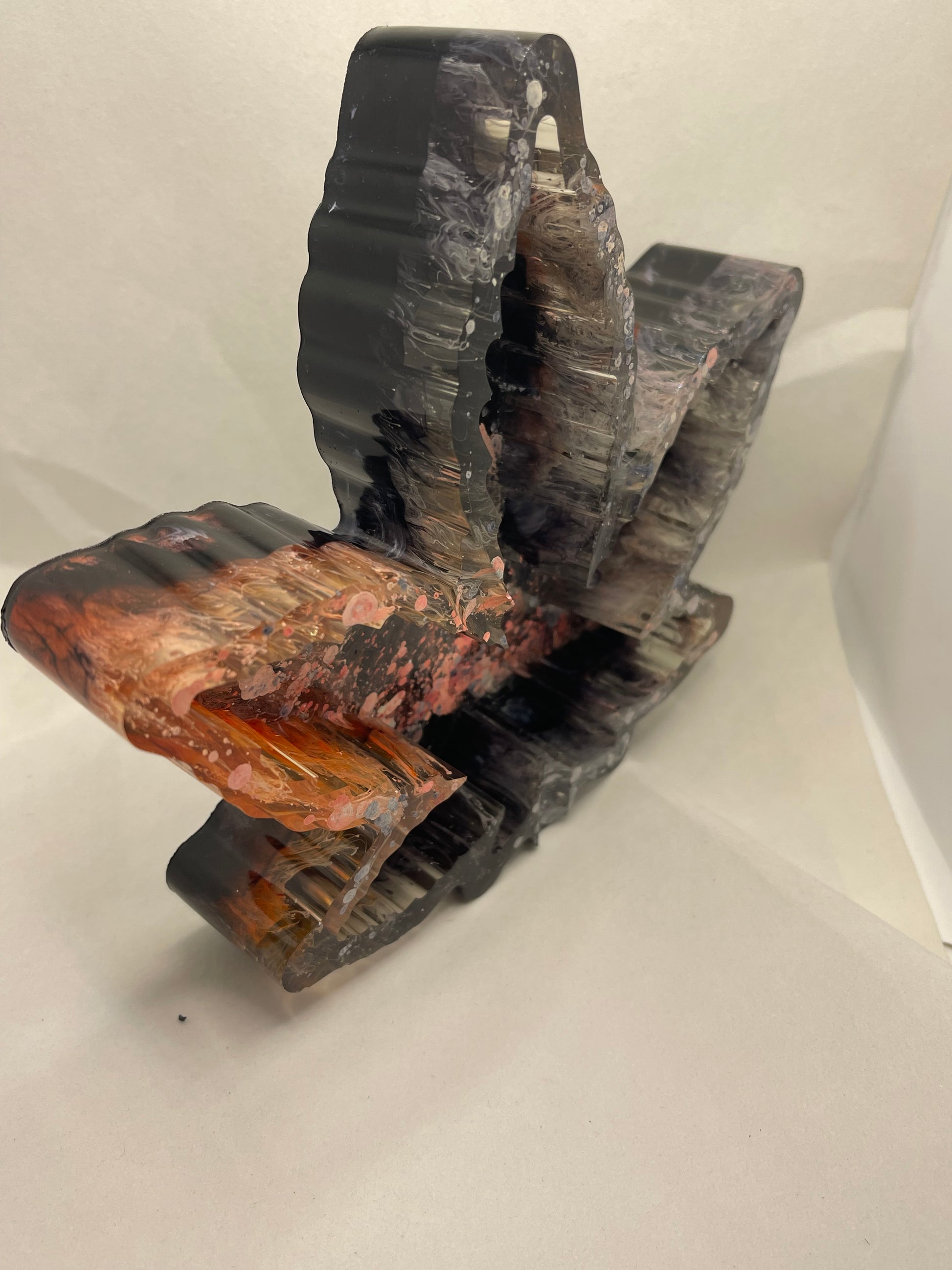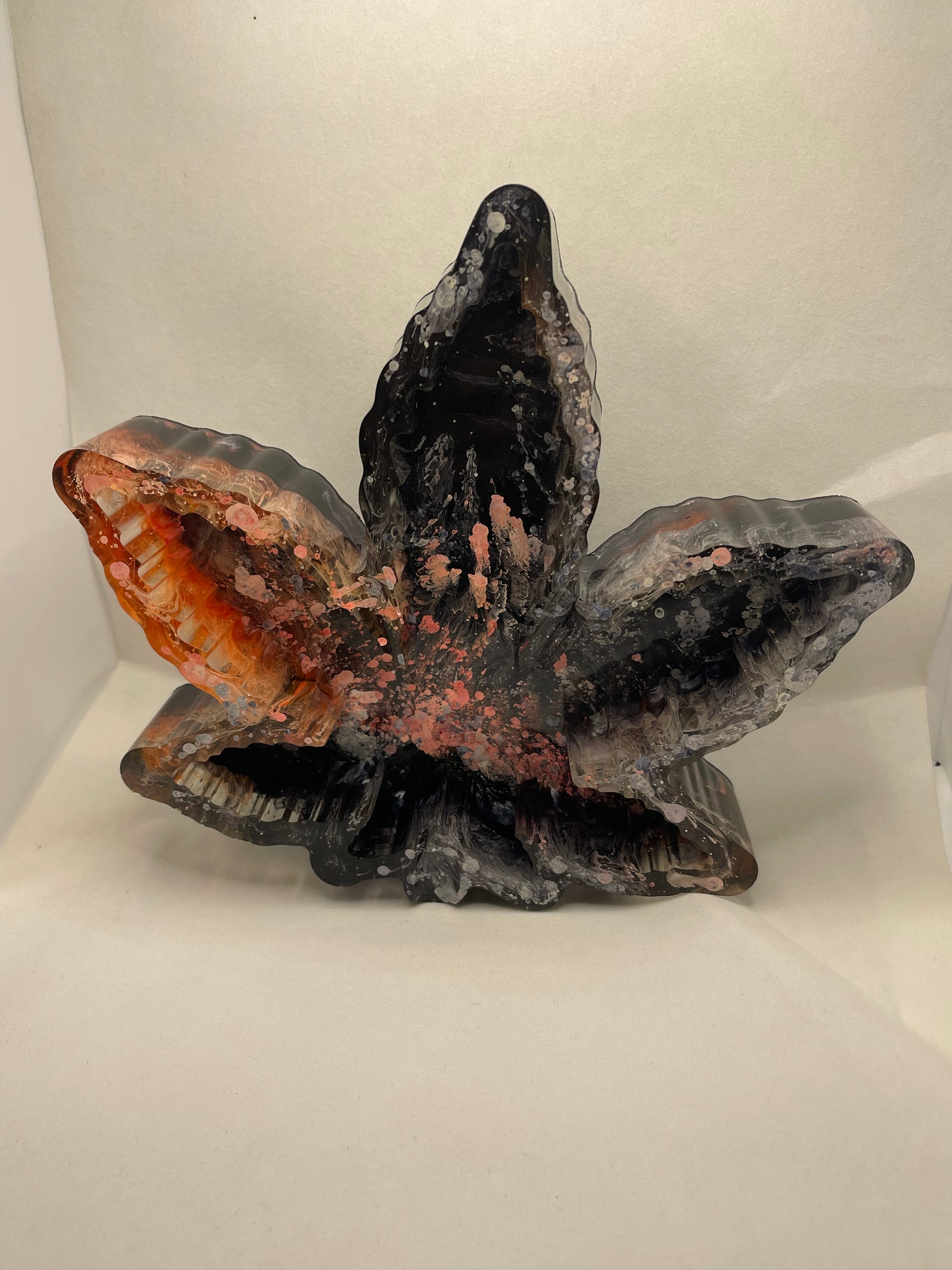 Mix colors of black, red, orange and white marijuana leaf resin ashtray.